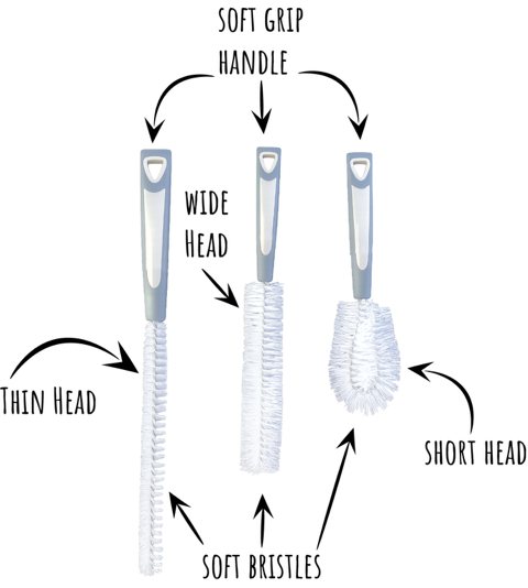 The soft bristles are safe for any cleaning task and are all dishwasher safe.